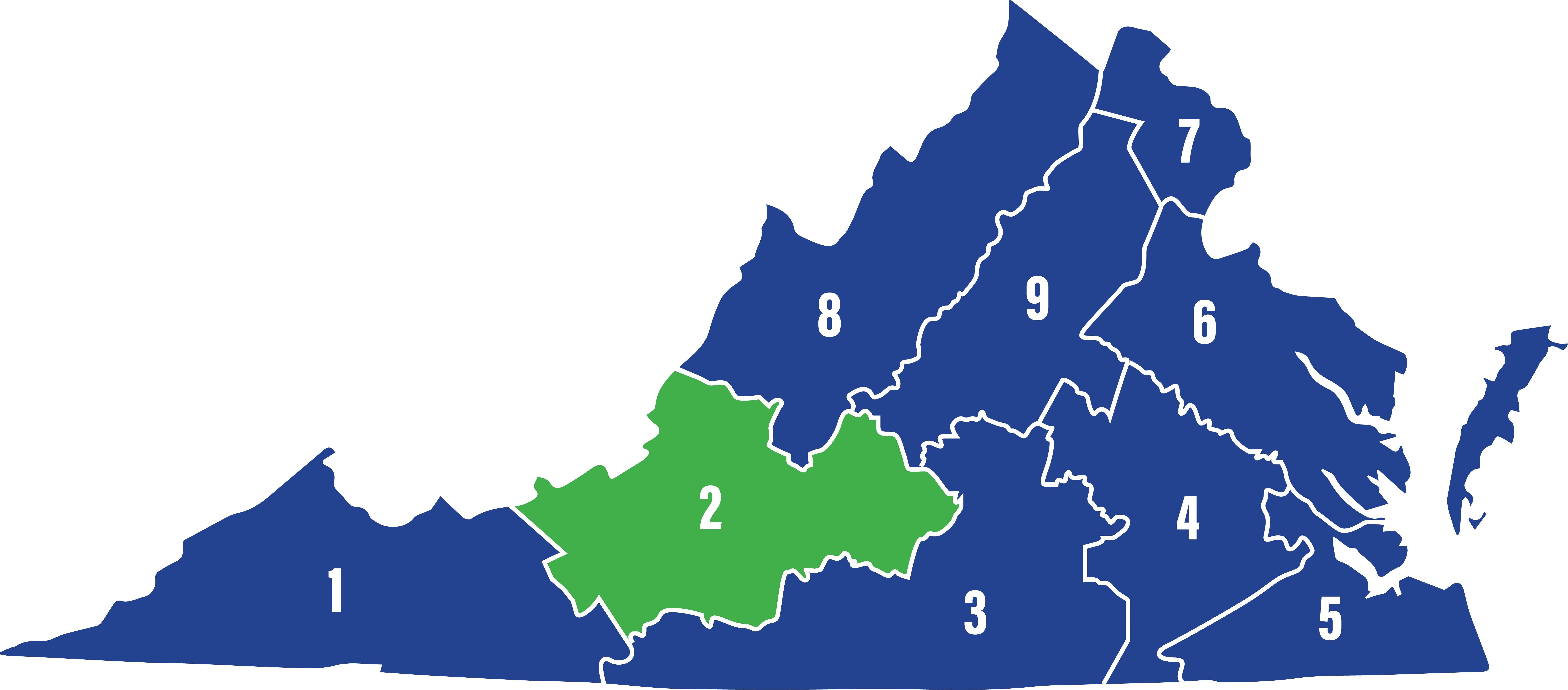 ریجن ٹو میں الیگھنی، ایمہرسٹ، اپومیٹوکس، بیڈفورڈ، بوٹیٹورٹ، کیمبل، کریگ، فلائیڈ، فرینکلن، جائلز، مونٹگمری، پلاسکی، اور روانوکے، اور کوونگٹن، لنچبرگ، ریڈفورڈ، روانوکے اور سیلم کے شہر شامل ہیں۔